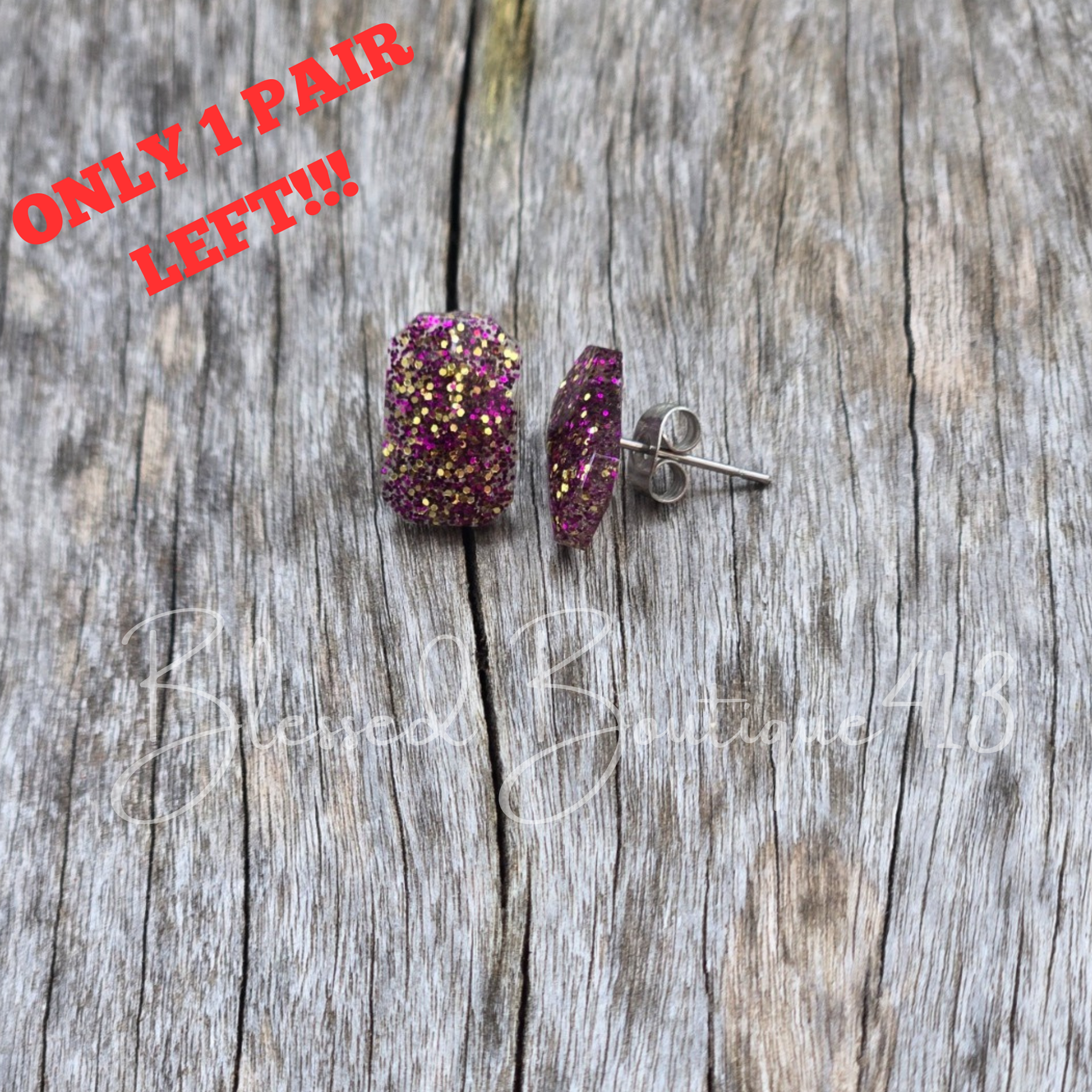 Show off your Southern sparkle with our Bayou Belle Studs! Inspired by the bold spirit of Louisiana and the iconic purple and gold of LSU, these emerald-shaped resin glitter studs shine with rich purple tones and golden flecks that catch the light just right. The elegant cut adds a touch of sophistication, while the colors proudly rep Tiger Nation.