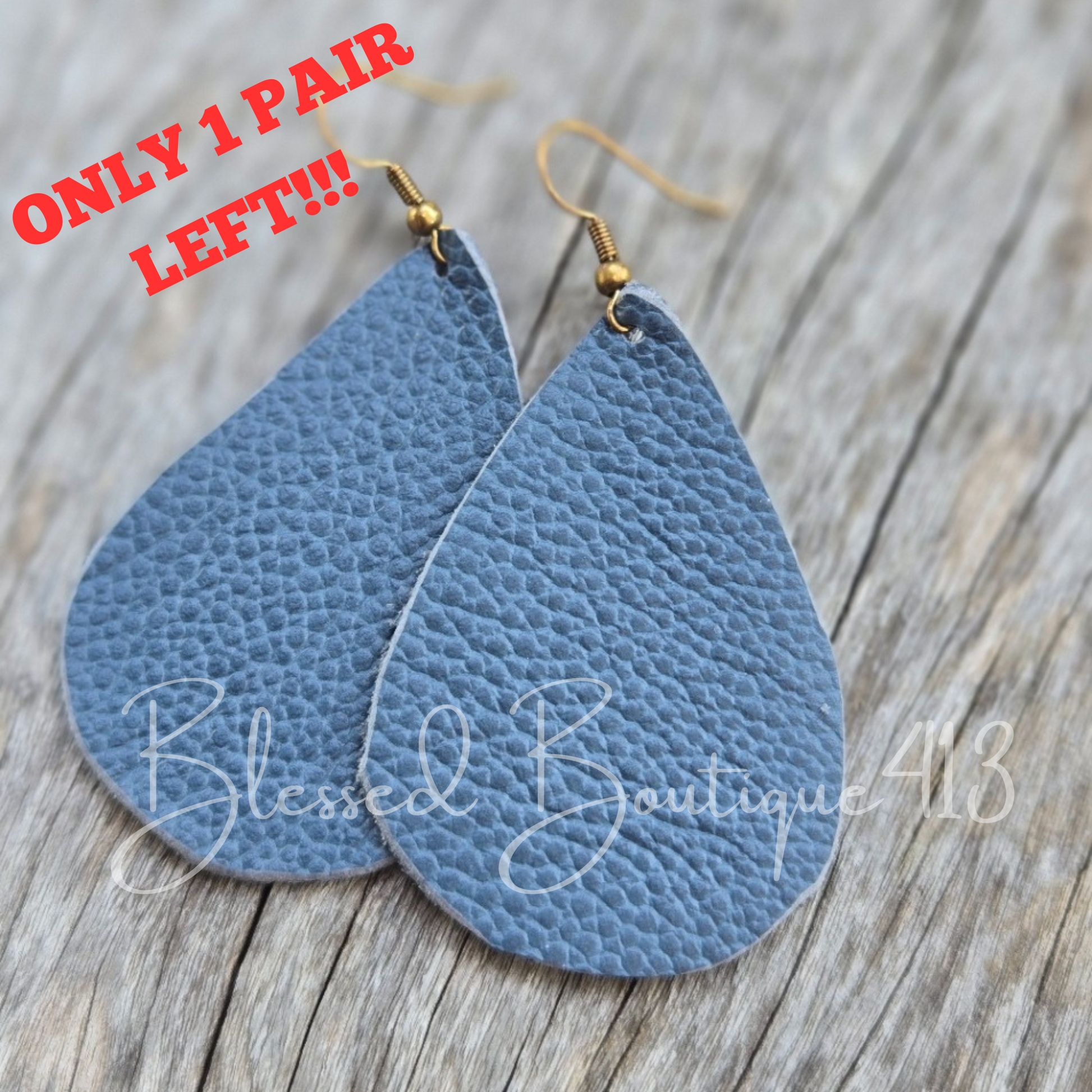 Inspired by open skies and mountain views, our Blue Ridge Teardrops bring a cool, calming touch to any outfit. Crafted from smooth blue leather in a timeless teardrop shape, these earrings are lightweight, easy to wear, and full of effortless charm. Perfect with denim or dressed-up looks, they’re your go-to for relaxed, rustic elegance.