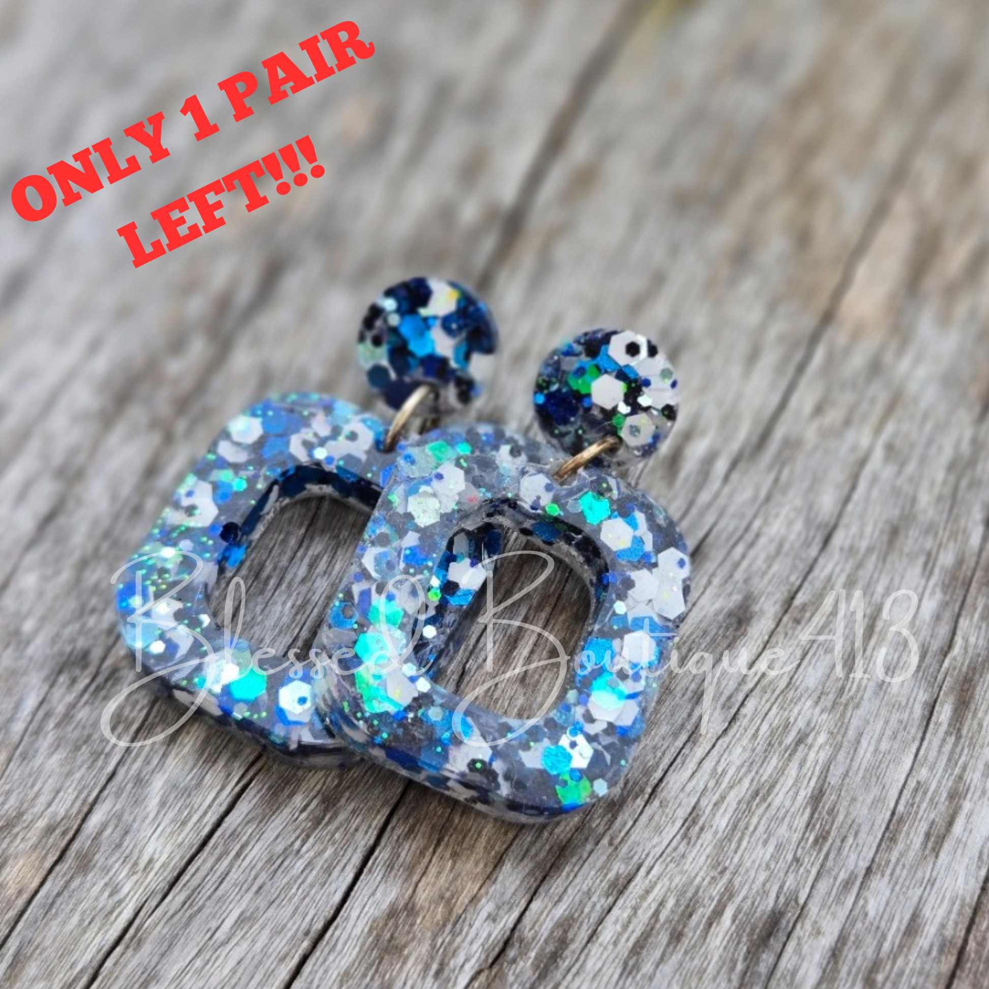 Bring the beauty of the sea to your ears with these stunning handmade resin earrings. Featuring a shimmering blend of navy, aqua, and white glitter, each pair captures the dreamy depths and sparkling waves of a coastal escape.