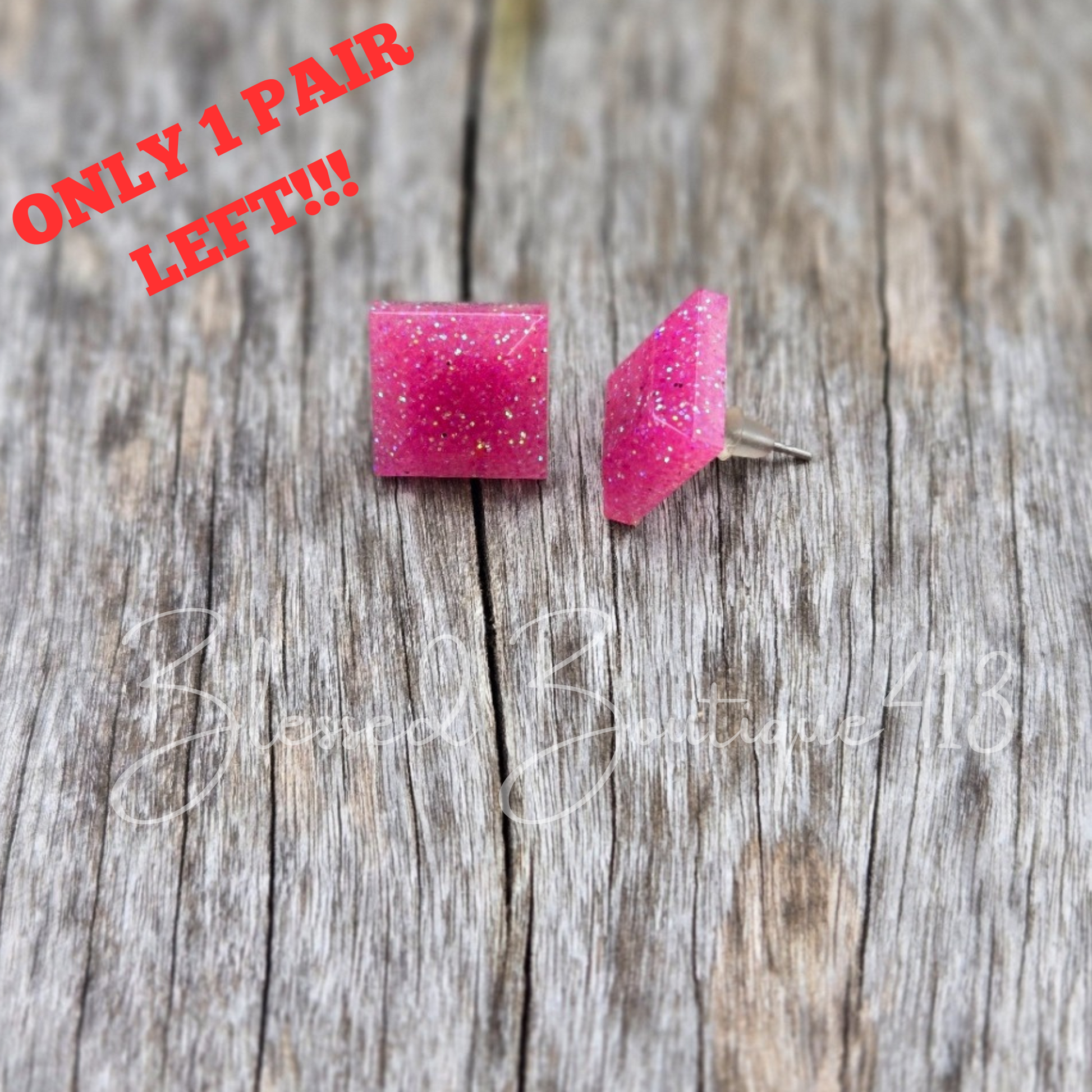 Sweet, sparkly, and full of sass — our Cotton Candy Cubes are a must-have for any glitter lover! These square-shaped resin earrings are bursting with bubble gum pink glitter that shines like a candy-coated dream. Their bold geometric shape adds a modern twist to their sugary-sweet sparkle.