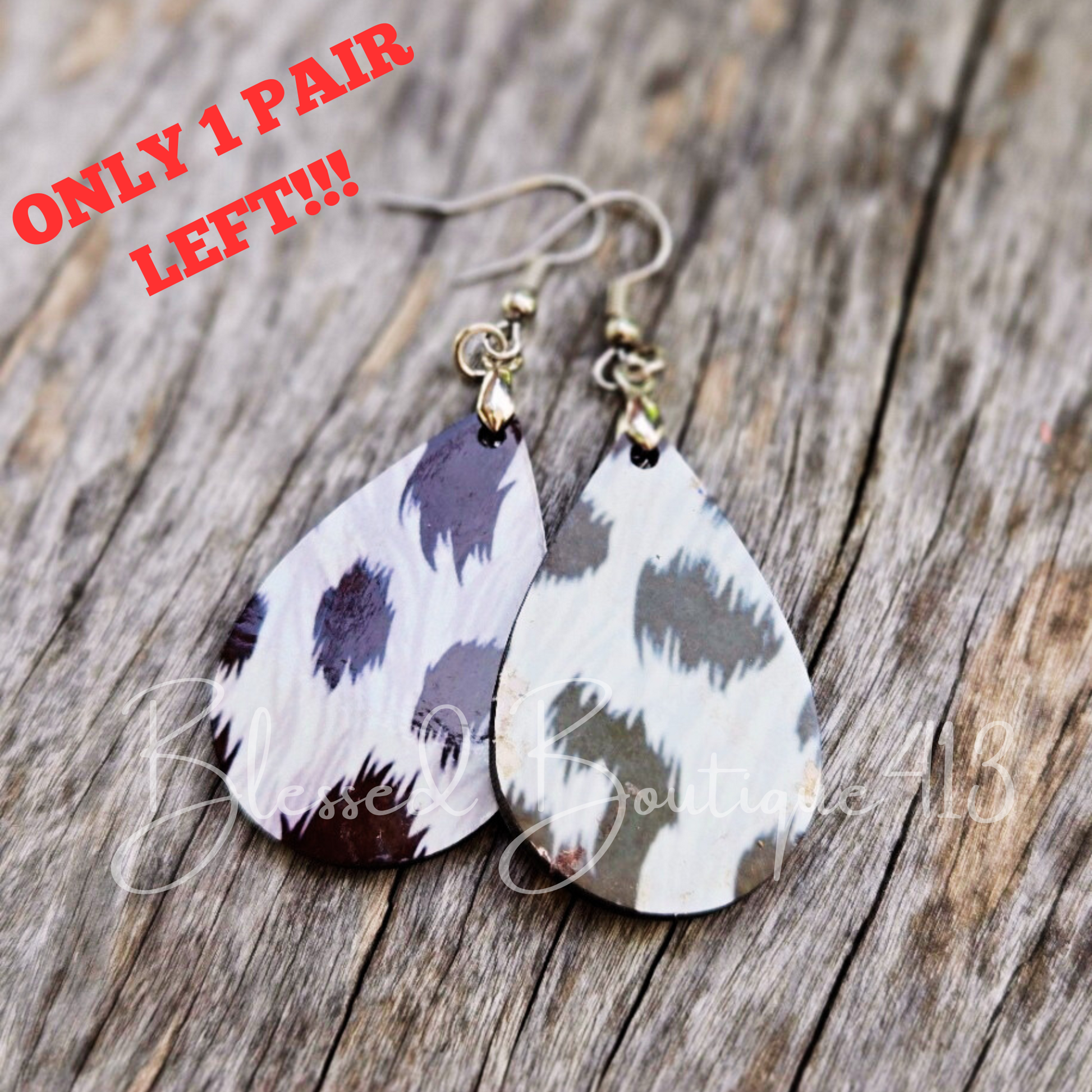 Bold, timeless, and full of Western flair — our Cowgirl Classic Teardrops are the ultimate nod to your wild side. Featuring a high-quality sublimated black-and-white cowprint on a classic teardrop shape, these earrings are lightweight, sassy, and ready to ride with any outfit. Whether you're headed to the rodeo, the market, or just running errands, they add that perfect punch of cowgirl charm.