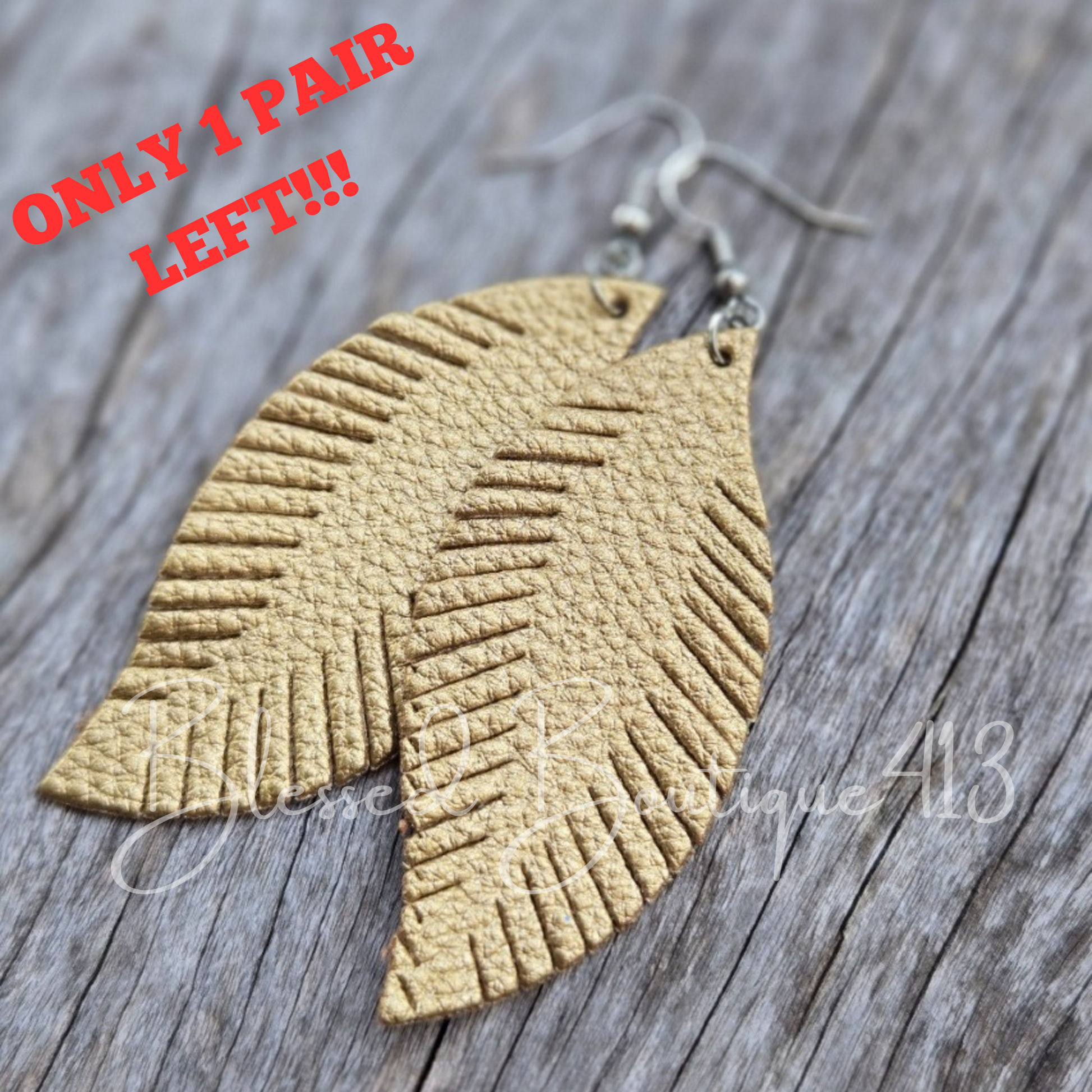 Shimmer with every step in our Golden Prairie Feathers. These feather-shaped leather earrings bring a touch of rustic glam with their metallic gold finish — perfect for adding a bold, yet natural, statement to your outfit. Lightweight and full of movement, they shine just as bright on the dance floor as they do at the farmer’s market.