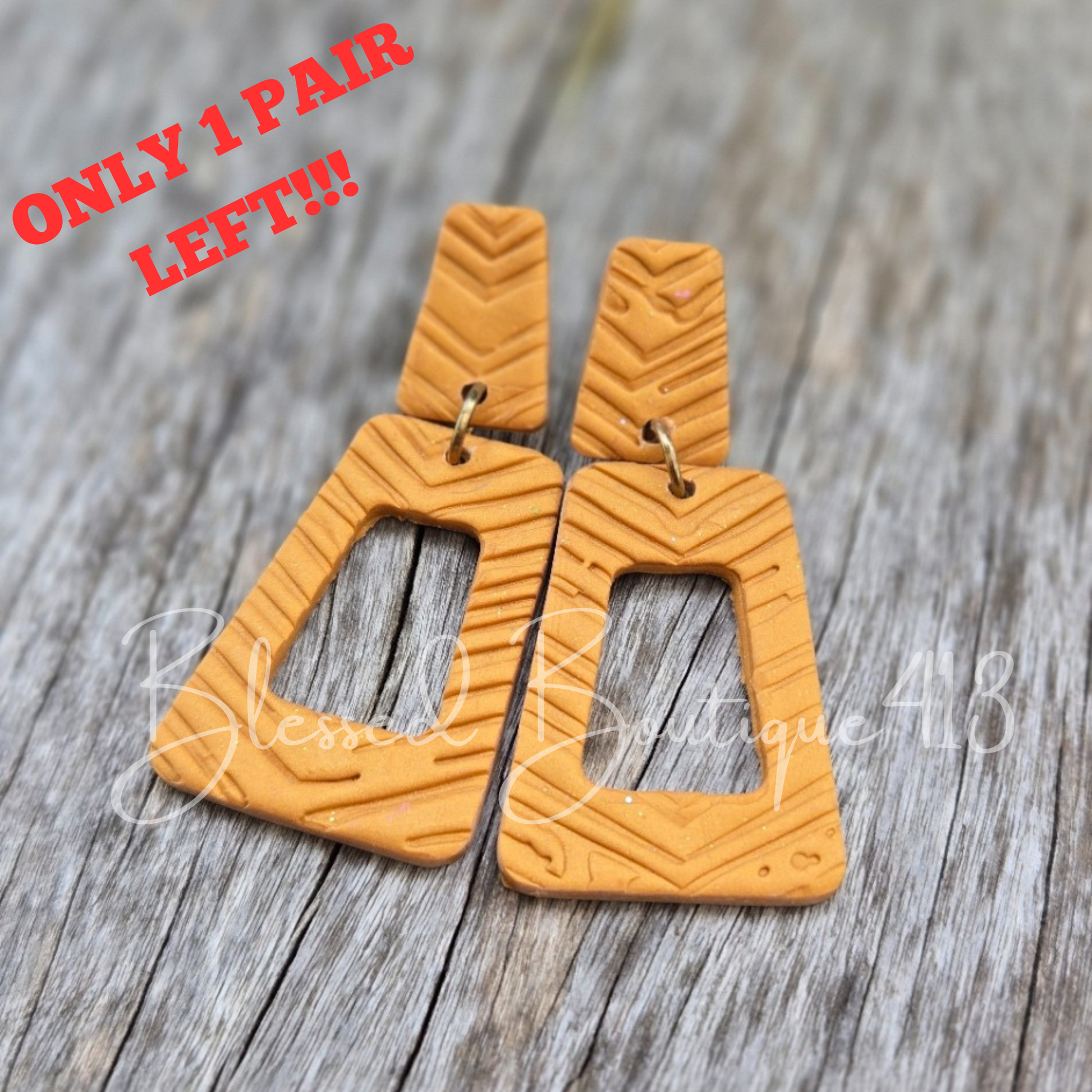 Bold, modern, and effortlessly chic — these handcrafted polymer clay earrings in a rich mustard tone are the perfect way to elevate your everyday look. Their shape adds a sleek, contemporary touch, while the warm golden hue gives off cozy sunset vibes all year round.
